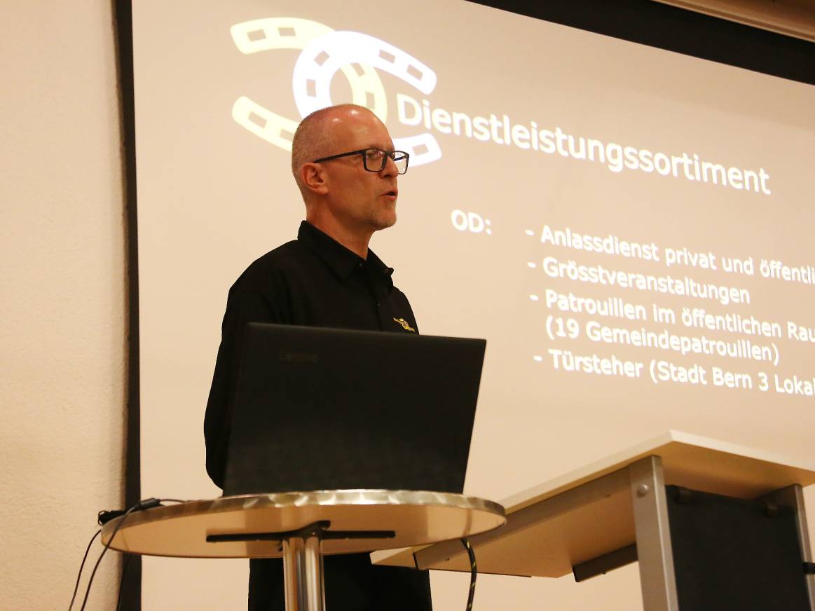 Mit seinem spannenden Referat zum Thema „Broncos Security AG“ weckte Gastreferent Roland „Role“ Steiner, Mitglied der Geschäftsleitung der Broncos Security AG, das Interesse der Anwesenden. Broncos? Das Bild des tätowierten, Ledergilet tragenden Töff-Fahrers ist auch an diesem Abend zu Beginn in den Köpfen der Anwesenden. Rasch korrigiert der Gastreferent dieses Bild und zeigt auf, wie sich die Broncos Security AG seit ihrer Gründung zu einem in der Sicherheitsbranche etablierten, professionellen Unternehmen entwickelt hat. Ihr Portfolio hat sich über die Jahre in die Breite entwickelt und geht heute vom klassischen Ordnungsdienst an Anlässen, zu Bewachungsaufträgen für Gebäude, Baustellen oder Gelände, Schliess- und Öffnungsrunden bei Banken, Logendiensten bei Verwaltungsgebäuden, Personenschutz, bis hin zu Beratung und Ausbildung von Dritten. Seit jeher macht die Broncos Security AG weder bei der Ausbildung, dem Lohn, noch bei den Karrieremöglichkeiten einen Unterschied zwischen ihren weiblichen und männlichen Mitarbeitenden. Auch die Ausbildung und die Einsätze finden zusammen statt.