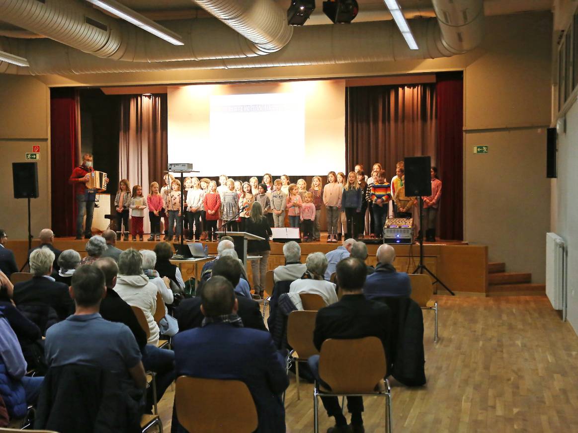 Eröffnet wurde der Anlass mit einem grossartigen Auftritt des Kinderchors der Musikschule Münchenbuchsee. Unter der Leitung von Susanne Grossenbacher und der Akkordeonbegleitung von Heinz Brönnimann sangen 30 Kinder bekannte Schweizer Volkslieder und lancierten damit den Abend.