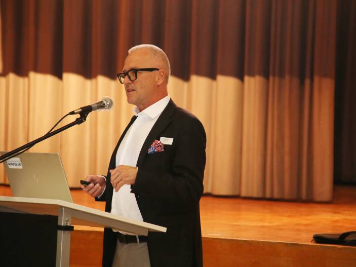 Mit seinem mit Spannung erwarteten Referat zum Thema „Robotik in der Kniechirurgie“ weckte Gastreferent Bernhard Christen, Facharzt für Orthopädische Chirurgie und Traumatologie des Bewegungsapparates, das Interesse der Anwesenden. Anschaulich und verständlich informierte er über den Stand der Technik und der damit verbundenen Möglichkeiten bei der Kniechirurgie. Seine lebhaften Ausführungen, untermalt mit eindrücklichen Bildern und begleitet von Filmausschnitten, sorgten beim anschliessenden Networking-Apéro für angeregte Diskussionen und spannenden Gedankenaustausch.